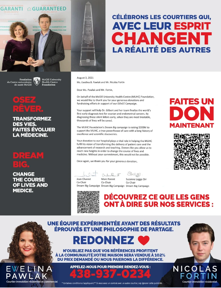 Extra Bass2024-07-03Trustindex verifies that the original source of the review is Google. We had a very good experience dealing with Nicolas Fortin and his team. He was very pro active during the process, took the time to explain the whole process and follow up with us. sylvie cuillerier2024-06-27Trustindex verifies that the original source of the review is Google. Professionnel, à l’écoute de nos besoins/préoccupations et au final vendu ! C’est sans hésitation que je vous recommande Nicolas et son équipe! ravi kiran2024-06-19Trustindex verifies that the original source of the review is Google. I got more than 5 star service experience from the work that Nicholas and his team did for me in selling one of my condo. It was very much smooth and Nicholas was able to sell my condo in one month. I would definitely recommend Nicholas for any Real Estate needs. Antoine Toulouse2024-06-12Trustindex verifies that the original source of the review is Google. Merci encore! Service très professionnel Pierre Arbique2024-04-03Trustindex verifies that the original source of the review is Google. Nous avons beaucoup apprécié le professionnalisme et l'efficacité de l'équipe Fortin. Nous sommes entièrement satisfaits de ses services et le recommandons sans hésiter. Dawid Dubé2024-03-07Trustindex verifies that the original source of the review is Google. Notre expérience avec Ewelina Pawlak et Nicolas Fortin en tant que courtière immobilière et courtier immobilier a été exceptionnelle. Leur engagement total nous a accompagné de A à Z tout au long du processus d'achat de ma première maison. Leur professionnalisme, leur attention aux détails et leur dévouement ont rendu cette expérience sans stress. Nous recommandons madame Pawlak et monsieur Fortin à 100% pour leur service exceptionnel et leur expertise remarquable. Mahesh Turaka2024-03-02Trustindex verifies that the original source of the review is Google. It was great pleasure working with Aulia & Nicolas They helped me to find the right property as per my requirements and budget Lucie m.t. Lamontagne2024-02-28Trustindex verifies that the original source of the review is Google. Il me fait énormément plaisir de vous relater mes expériences avec les courtiers Ewelina Pawlak et Nicolas Fortin. J’ai fait à date plus de 4 transactions immobilières dans différentes villes de la grande région de Montréal avec Mme Pawlak et plus récemment avec aussi M. Fortin. J’ai beaucoup apprécié leur professionnalisme et leurs conseils toujours éclairés dont je peux que me réjouir de les avoir suivis. Leur gentillesse, leur disponibilité et leur patience ont toujours été remarquables. Et leur compétence s’est manifestée autant dans tous les moyens utilisés pour diffuser adéquatement les informations, ainsi qu’à toutes les étapes des processus de vente ou d’achat selon le cas, même avec des clients potentiels que je pourrais qualifier de difficiles. Je continuerai à utiliser leurs services advenant une prochaine situation et je les recommande sans réserves. Lucie Lamontagne Éric Brochu2024-02-06Trustindex verifies that the original source of the review is Google. Quelques jours après la mise en marché de ma maison avec l’équipe Du Proprio, j’ai reçu un appel d’une courtière immobilier de Remax, Ewelina Pawlak. Une courtière immobilier rassurante qui dégage une énergie positive et un bon sens des affaires. Rapidement la connexion c’est créé entre nous, moins de 2 semaines s’était écoulé qu’une visite libre permettait de réaliser ma vente et d’atteindre mes objectifs financiers. Merci Ewelina et toute l’équipe qui m’on aidé tout au long de cette aventure. Clément Stegen2024-01-26Trustindex verifies that the original source of the review is Google. Nicolas et Ewelina ont été d'une grande aide pour la vente de notre maison. Nous avons apprécié leur professionnalisme et la justesse de l'information fournie sur le marché afin de prendre de bonnes décisions. Merci!Load moreGoogle rating score: 4.8 of 5, based on 118 reviews